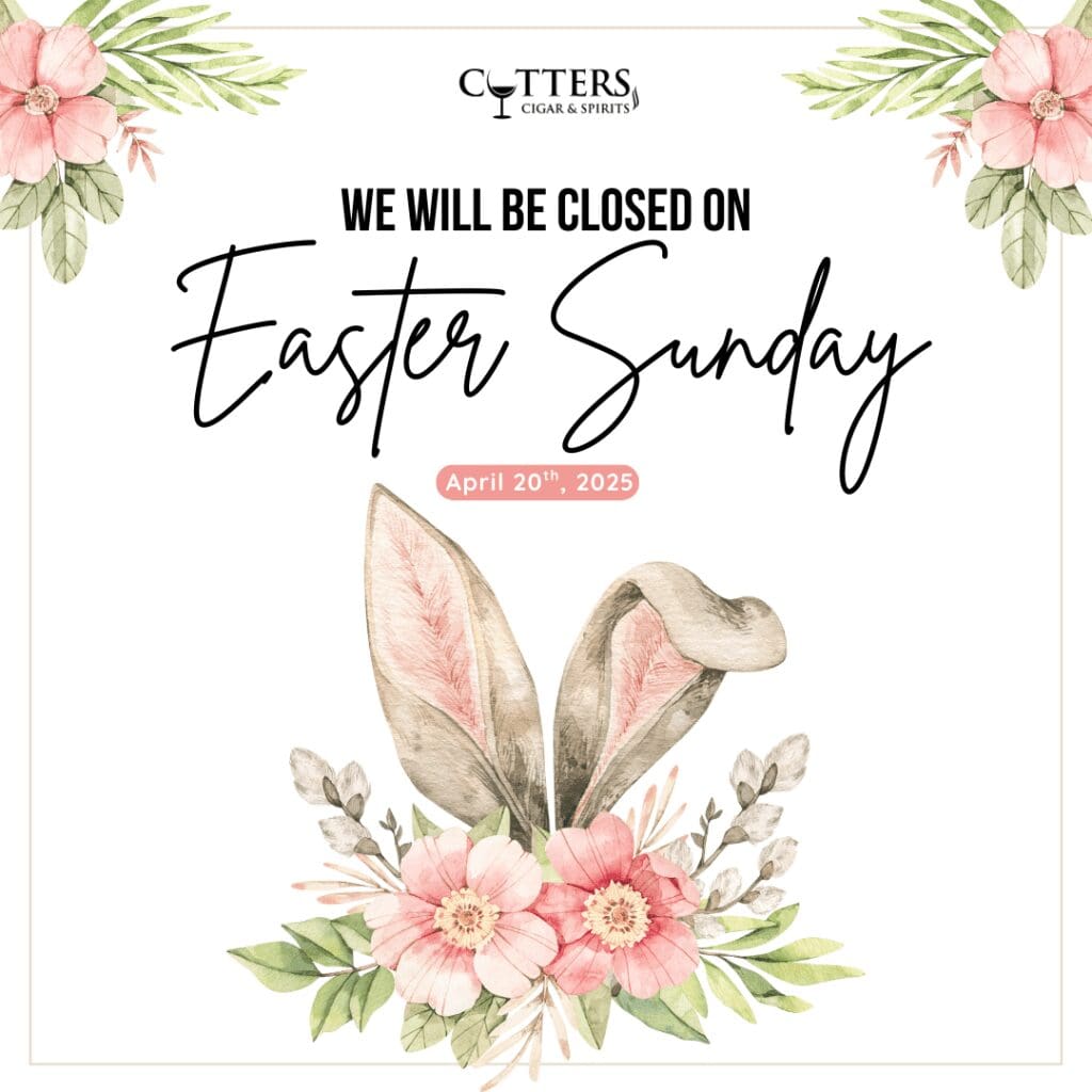 Cutters Cigar & Spirits will be closed on Sunday, April 20, 2025, in observance of Easter Sunday.