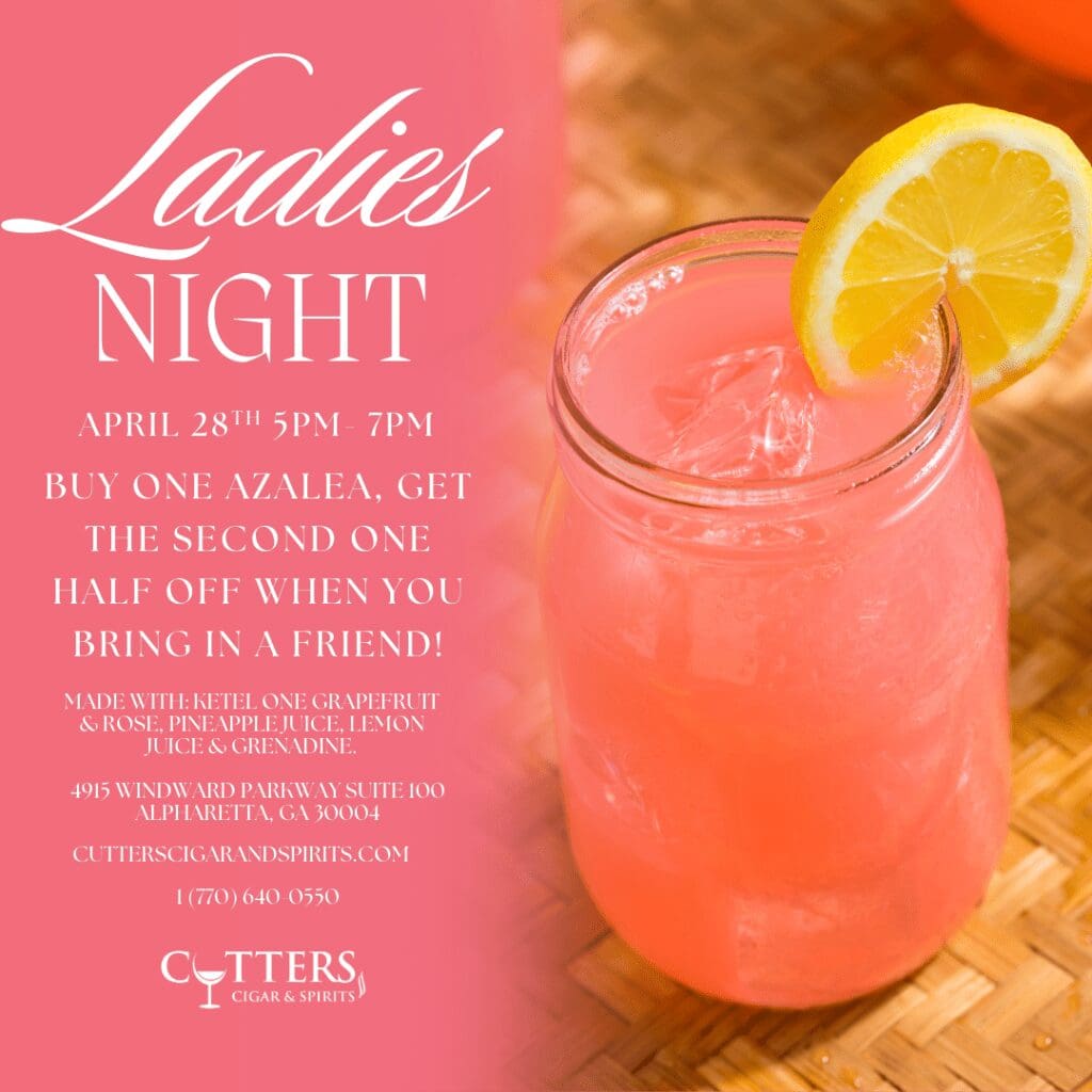Grab your girls and join us for Ladies Night on April 28th from 5 PM – 7 PM at Cutters Cigar & Spirits! 🎉✨