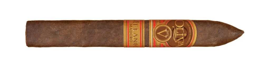 The Oliva Serie V Melanio is the only brand that has won Cigar of the Year in both wrapper variations. The original Melanio, wrapped in an Ecuadorian Sumatra, took home the No. 1 spot in 2012. But it is the Melanio Maduro, which won it all in 2021 in this exact shape, that caught our panel’s attention again in 2024.